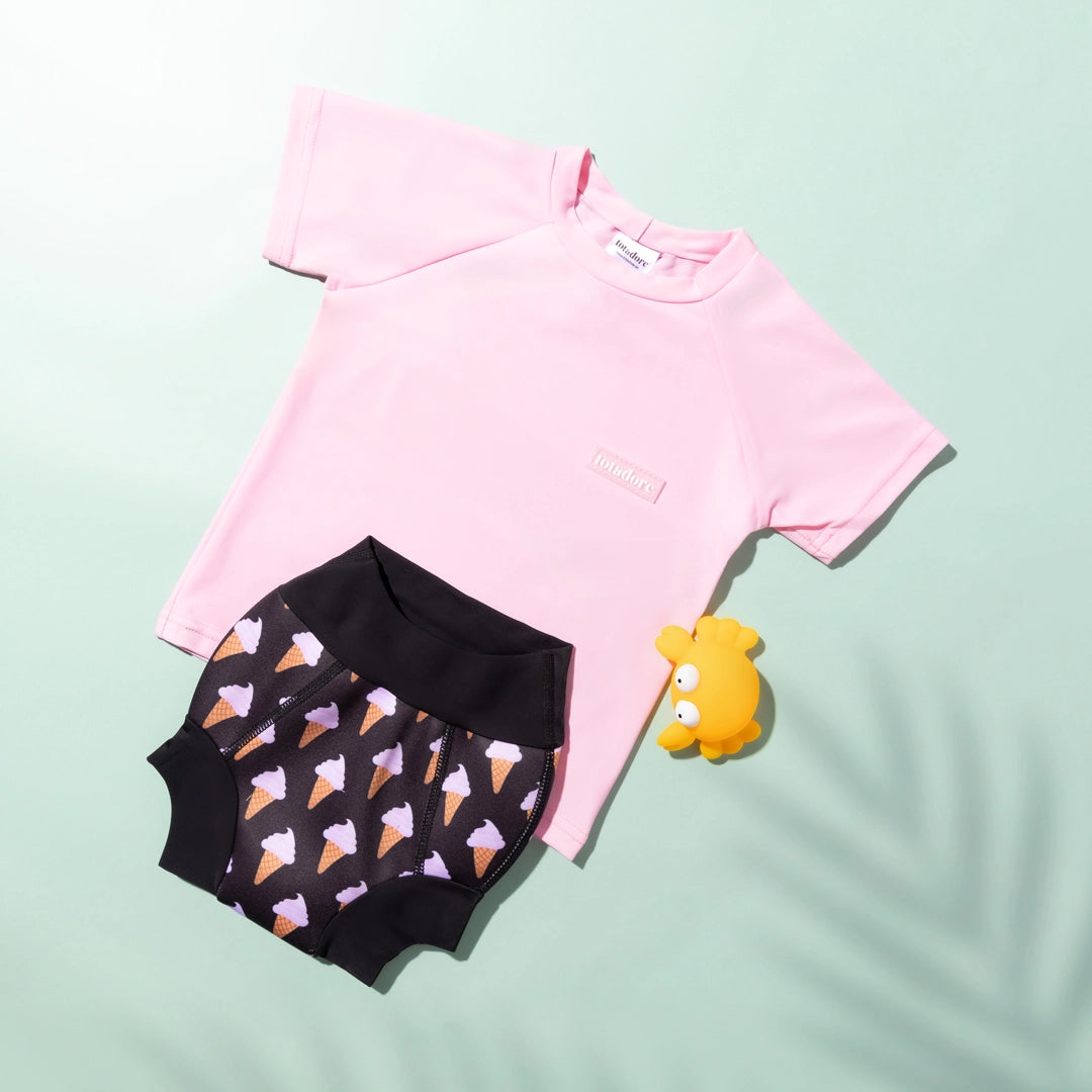 Kombinera med våra badblöjor för ett komplett skyddspaket, eller bär dem separat – våra UV-tröjor är byggda för att ge fri rörlighet och säker vila i solen.