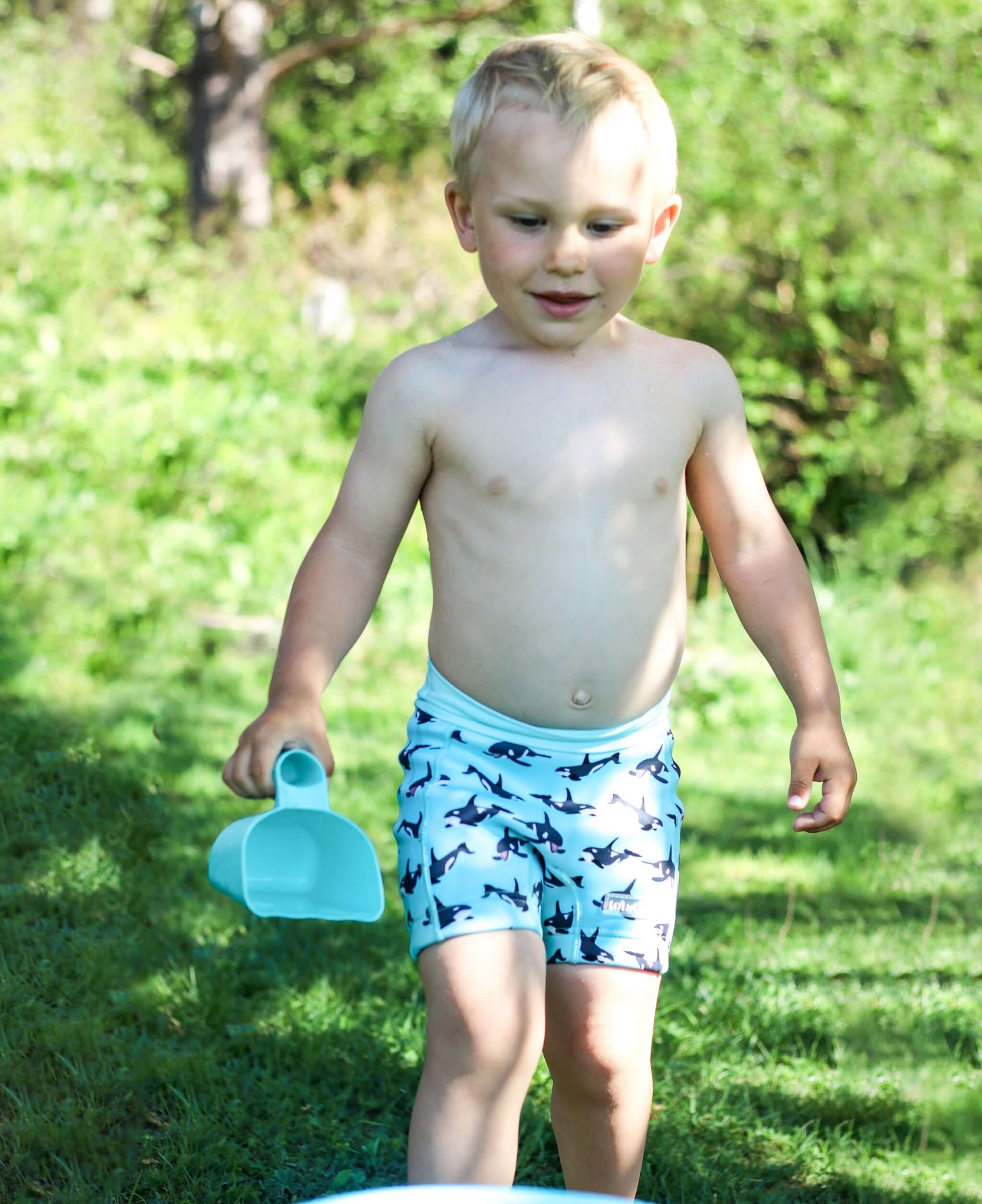 Våra UV-tröjor finns i flera färger. Kombinera gärna med våra badshorts eller badblöjor för en komplett, skyddande outfit.